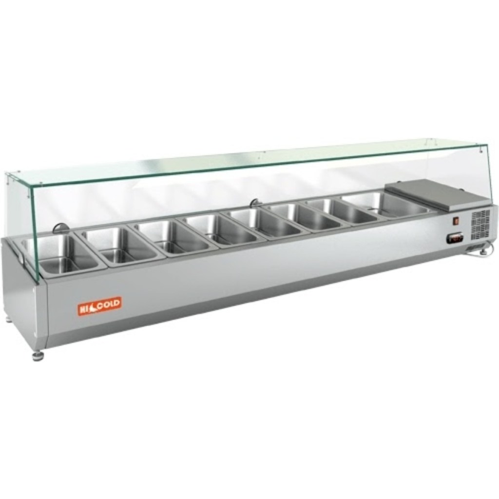 Каталог оборудования Холодильное оборудованиеВитрины для ингредиентовВитрина холодильная для ингредиентов HICOLD VRTG 1835 1/3 Витрина холодильная для ингредиентов HICOLD VRTG 1835 1/3 Код товара: 001-526 Поделиться: WhatsAppTelegram СравнитьДобавить в КПВ избранное 0 71 487 ₽ В корзину 0 шт В наличии на 1 складеДоступно для заказа 4 шт.Наличие на складахМоскваМО, Бритово, Раменский гор. округ, Складской комплекс ССТ, корп. 2, секция 2В наличии 4 шт.Самовывоз сегодня бесплатно Расчет стоимости доставкиОткудаМоскваКудаМоскваСанкт-ПетербургАстраханьБарнаулБелгородБрянскВладивостокВолгоградВоронежЕкатеринбургИвановоИжевскИркутскКазаньКалининградКемеровоКировКраснодарКрасноярскКурскЛипецкМагнитогорскМахачкалаНабережные ЧелныНижний НовгородНижний ТагилНовокузнецкНовосибирскОмскОренбургПензаПермьПятигорскРостов-на-ДонуРязаньСамараСаратовСимферопольСтавропольТверьТольяттиТомскТулаТюменьУлан-УдэУльяновскУфаХабаровскЧебоксарыЧелябинскЯрославльРассчитатьРасчет стоимости доставки указан приблизительный, более точный расчет Вам может осуществить сотрудник транспортной компании. Взять в кредит Купить в лизинг Получить консультацию в WhatsApp Описание Характеристики Отзывы 0 Инструкции 2 Витрина холодильная для ингредиентов HICOLD VRTG 1835 1/3 предназначена для охлаждения, кратковременного хранения и наглядной демонстрации ингредиентов, салатов и готовых блюд на предприятиях общественного питания и в торговых точках. Гастроёмкости в комплект не входят, приобретаются отдельно. Основные особенности: Корпус выполнен из нержавеющей стали, обеспечивая долговечность и легкость в уходе; Электронная панель управления для точной настройки температуры; Модель с надстройкой из стекла (исполнение G) для удобной демонстрации продуктов; Высота витрины — 225 мм, высота стеклянной надстройки — 205 мм; Вместимость: 7 гастроёмкостей GN1/3 и 1 гастроёмкость GN1/2; Опорные ножки для устойчивой установки на столешнице. HICOLD VRTG 1835 1/3— компактная и функциональная настольная витрина, идеально подходящая для демонстрации и кратковременного хранения продуктов на профессиональной кухне или в торговой зоне. Изображение товара, представленного на фото, может отличаться от его фактического вида. Показать все Габаритные размеры1835×385×459 ммДиапазон рабочей температурыот +2 до +7 °CДлина1835 ммГлубина385 ммВысота459 ммТип крышкиСтеклянная Гастроемкостей8 штТип гастроемкостейGN1/3, GN1/2 Мощность150 ВтНапряжение220 ВТип охлажденияСтатическое Материал изготовленияНержавеющая сталь ХладагентR134 Мощность0,15 кВтВес нетто 55 кгВес брутто102 кгТип оттайкиРучная Габариты в упаковке2030×590×550 ммБрендHicold Оставить отзыв Еще никто не оставил отзыв на этот товар Инструкция на HICOLD VRTG 1835.pdfДекларация о соответствии.pdf Похожие товары Перейти в каталог Под заказ 53 040 ₽ Витрина холодильная для ингредиентов TEFCOLD VK33-180 С этим товаром покупают В наличии 83 719 ₽ Шкаф холодильный МХМ Капри 0,7М Ранее просмотрено Под заказ 68 031 ₽ Витрина холодильная для ингредиентов HICOLD VRTG 1835 1/4