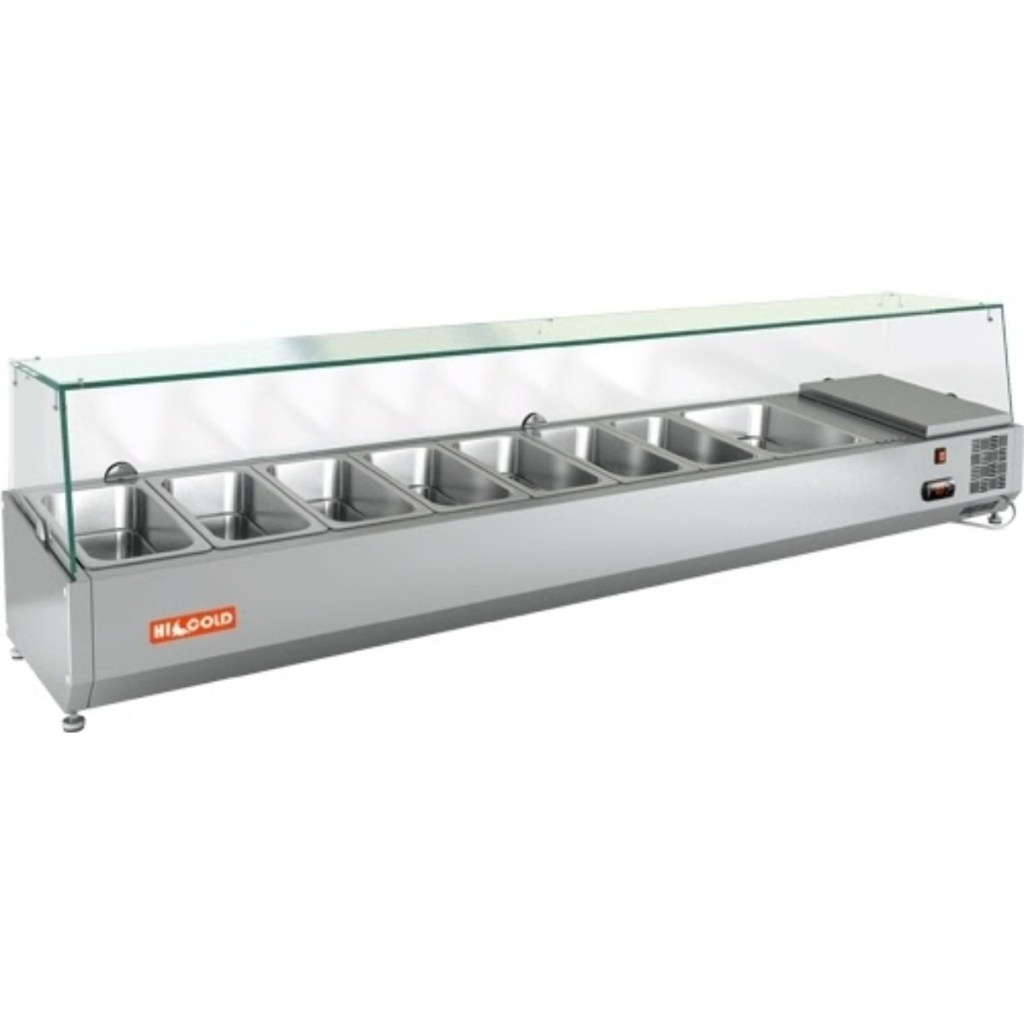 Каталог оборудования Холодильное оборудованиеВитрины для ингредиентовВитрина холодильная для ингредиентов HICOLD VRTG 1915 1/3 Витрина холодильная для ингредиентов HICOLD VRTG 1915 1/3 Код товара: 001-527 Поделиться: WhatsAppTelegram СравнитьДобавить в КПВ избранное 0 72 352 ₽ В корзину 0 шт Под заказСамовывоз сегодня бесплатно Взять в кредит Купить в лизинг Получить консультацию в WhatsApp Описание Характеристики Отзывы 0 Инструкции 2 Витрина холодильная для ингредиентов HICOLD VRTG 1915 1/3 предназначена для охлаждения, кратковременного хранения и наглядной демонстрации ингредиентов, салатов и готовых блюд на предприятиях общественного питания и в торговых точках. Гастроёмкости в комплект не входят, приобретаются отдельно. Основные особенности: Корпус выполнен из нержавеющей стали, обеспечивая долговечность и легкость в уходе; Электронная панель управления для точной настройки температуры; Модель с надстройкой из стекла (исполнение G) для удобной демонстрации продуктов; Высота витрины — 225 мм, высота стеклянной надстройки — 205 мм; Вместимость: 7 гастроёмкостей GN1/3 и 1 гастроёмкость GN1/2; Опорные ножки для устойчивой установки на столешнице. HICOLD VRTG 1915 1/3 — компактная и функциональная настольная витрина, идеально подходящая для демонстрации и кратковременного хранения продуктов на профессиональной кухне или в торговой зоне.Изображение товара, представленного на фото, может отличаться от его фактического вида. Показать все Габаритные размеры1915×385×459 ммДиапазон рабочей температурыот +2 до +7 °CДлина1915 ммГлубина385 ммВысота459 ммТип крышкиСтеклянная Гастроемкостей8 штТип гастроемкостейGN1/3, GN1/2 Мощность150 ВтНапряжение220 ВТип охлажденияСтатическое Материал изготовленияНержавеющая сталь ХладагентR134 Мощность0,15 кВтВес нетто56 кгВес брутто100 кгТип оттайкиРучная Габариты в упаковке2015×485×559 ммБрендHicold Оставить отзыв Еще никто не оставил отзыв на этот товар Инструкция на HICOLD VRTG 1915.pdfДекларация о соответствии.pdf Похожие товары Перейти в каталог Под заказ 101 613 ₽ Витрина холодильная для ингредиентов TEFCOLD VK33-180 С этим товаром покупают В наличии 97 310 ₽ Стол морозильный низкотемпературный Polair TB2GN-GC В наличии 26 519 ₽ Льдогенератор Cooleq ZB-15B (пальчики) В наличии 68 097 ₽ Шкаф холодильный Polair СМ 105-S Ранее просмотрено Под заказ 104 347 ₽ Стол холодильный среднетемпературный Polair ТМ2GN-G без борта