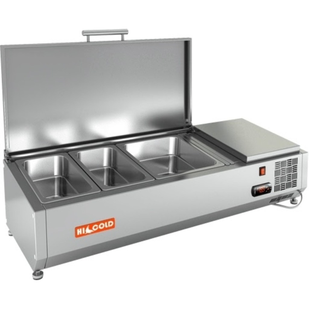 Каталог оборудования Холодильное оборудованиеВитрины для ингредиентовВитрина холодильная для ингредиентов HICOLD VRTU 1000 к PZE3 (1/3) Витрина холодильная для ингредиентов HICOLD VRTU 1000 к PZE3 (1/3) Код товара: 064-664 Поделиться: WhatsAppTelegram СравнитьДобавить в КПВ избранное 0 47 673 ₽ В корзину 0 шт Под заказСамовывоз сегодня бесплатно Взять в кредит Купить в лизинг Получить консультацию в WhatsApp Описание Характеристики Отзывы 0 Инструкции 3 Витрина холодильная для ингредиентов HICOLD VRTU 1000 к PZE3 (1/3) предназначена для охлаждения, кратковременного хранения и демонстрации ингредиентов, салатов и готовых блюд на предприятиях общественного питания и торговли. Устанавливается на холодильные столы для пиццы серии PZE3 благодаря встроенным креплениям в нижней части корпуса. На фото показана аналогичная модель с настольной установкой. Ключевые особенности: Корпус из нержавеющей стали — долговечность и лёгкость ухода. Электронная панель управления — точная настройка температуры. Исполнение U — оснащена крышкой для защиты продуктов. Высота витрины — 279 мм — компактное размещение на рабочей поверхности. Вместимость: 2 x GN1/3 + 1 x GN1/2 — рациональная организация хранения (гастроёмкости приобретаются отдельно). Совместимые модели столов: PZE3-11/GN, PZE3-11/SN HICOLD VRTU 1000 к PZE3 (1/3) — это профессиональная настольная витрина, которая сочетает компактные размеры, современное управление и надежную защиту ингредиентов. Отличный выбор для пиццерий, ресторанов и кафе, где важны удобство доступа, сохранность продуктов и высокая скорость работы.Изображение товара, представленного на фото, может отличаться от его фактического вида. Показать все Габаритные размеры1000×385×279 ммДиапазон рабочей температурыот +2 до +7 °CДлина1000 ммГлубина385 ммВысота279 ммТип крышкиМеталлическая Гастроемкостей3 штТип гастроемкостейGN 1/2, GN 1/3 Напряжение220 ВТип охлажденияСтатическое Материал изготовленияНержавеющая сталь ХладагентR134 Мощность0,15 кВтВес нетто 27 кгВес брутто60 кгТип оттайкиРучная Габариты в упаковке1180×550×590 ммБрендHicold Оставить отзыв Еще никто не оставил отзыв на этот товар Инструкция на HICOLD VRTU 2360 к PZ4.pdfСхема установки на витрину.jpgДекларация о соответствии.pdf Похожие товары Перейти в каталог Под заказ 50 575 ₽ Витрина для ингредиентов Polair VT2-G (1/3) с крышкой В наличии 72 104 ₽ Витрина холодильная для ингредиентов TEFCOLD VK33-120 С этим товаром покупают В наличии 102 148 ₽ Стол морозильный Cooleq SNACK2100BT/600 В наличии 92 440 ₽ Льдогенератор HURAKAN HKN-IMG40 (гурме) Ранее просмотрено Под заказ 54 694 ₽ Витрина холодильная для ингредиентов HICOLD VRTU 1485 к PZE3 (1/3) Под заказ 89 578 ₽ Витрина холодильная для ингредиентов HICOLD VRTG 2360 к PZ3 (1/3)