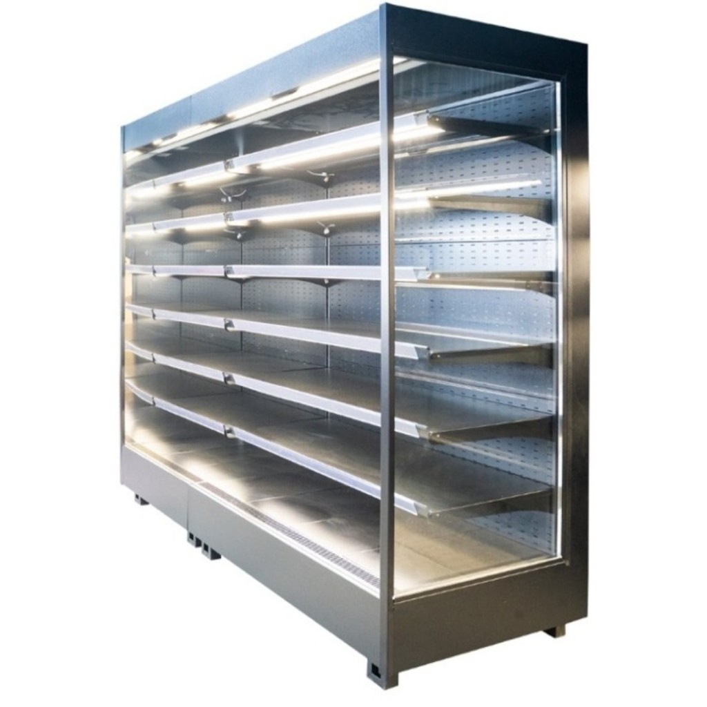 Система воздушной завесы предотвращает попадание тёплого воздуха внутрь витрины, обеспечивая стабильный температурный режим даже при интенсивной эксплуатации. Встроенное LED-освещение делает выкладку яркой и привлекательной, при этом потребляет минимум электроэнергии.