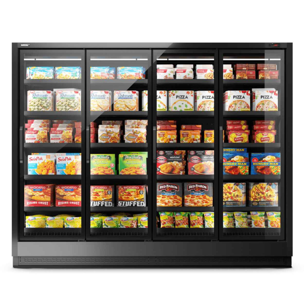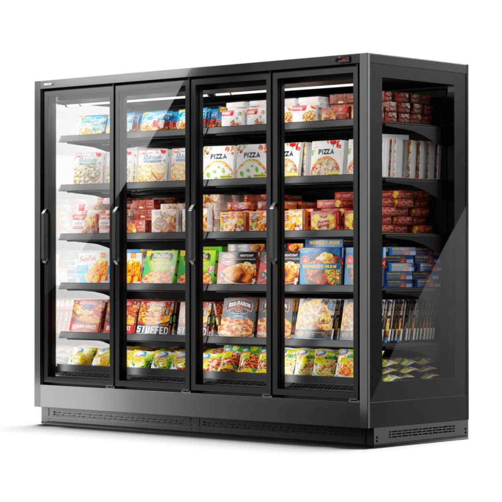 Двери с тройным энергосберегающим остеклением предотвращают образование конденсата и сохраняют стабильный температурный режим внутри витрины.