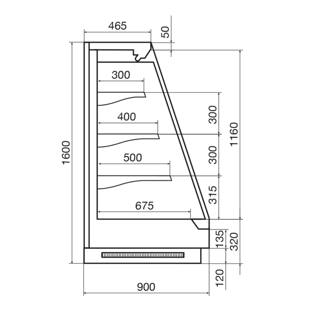 Горка холодильная Dazzl Vega 090 H160 125 — это современная и функциональная холодильная горка, предназначенная для эффектной демонстрации и кратковременного предпродажного хранения предварительно охлаждённых гастрономических изделий на предприятиях торговли и общественного питания.