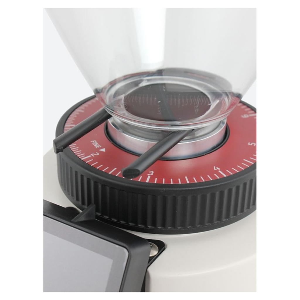 Кофемолка Leon 700 белая предназначена для профессионального и домашнего использования — в кофейнях, барах, кафе, на предприятиях общественного питания и дома. Модель оснащена воронкообразным бункером для кофейных зерен с крышкой и интегрированной ручкой, сенсорным дисплеем управления с наклонным расположением, дозатором и боковым выключателем. Корпус выполнен из прочного материала с белой поверхностью, жернова — из высококачественной закаленной стали, крышка — из черного пластика.
