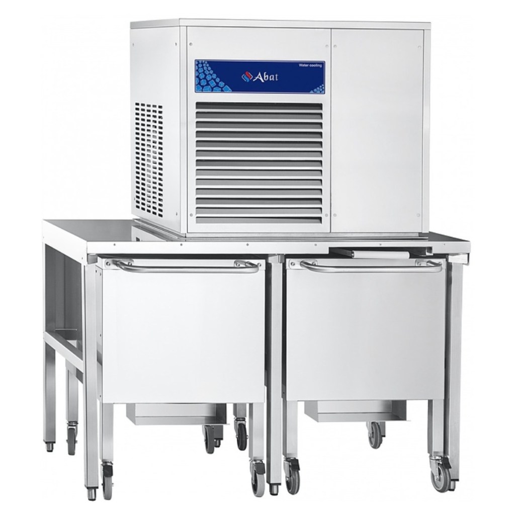 В комплект входят стол для установки льдогенератора и 2 бункера.