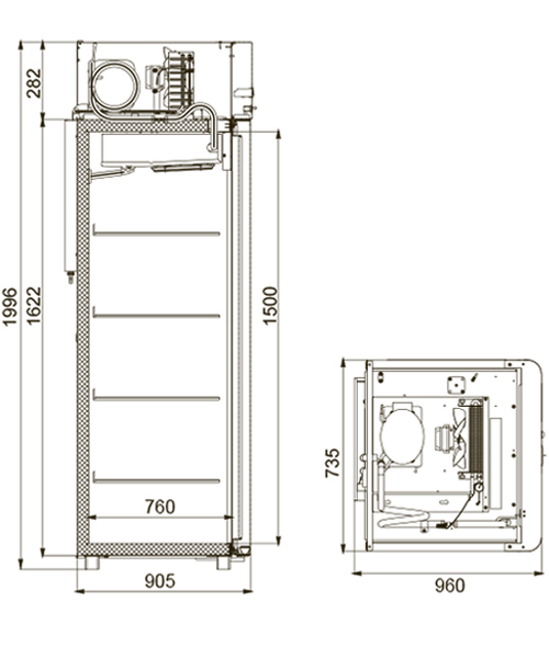 Каталог оборудования Холодильное оборудованиеШкафы холодильныеШкафы морозильные низкотемпературные до -18 °СШкаф морозильный Polair Polair CB107-Gm Alu Шкаф морозильный Polair Polair CB107-Gm Alu Код товара: 062-591 Поделиться: WhatsAppTelegram СравнитьДобавить в КПВ избранное 0 165 920 ₽ В корзину 0 шт Под заказСамовывоз сегодня бесплатно Взять в кредит Купить в лизинг Получить консультацию в WhatsApp Описание Характеристики Отзывы 0 Инструкции 4 Шкаф морозильный Polair Polair CB107-Gm Alu разработан для демонстрации и надежного хранения продуктов на предприятиях общественного питания и торговли. Цельнозаливной корпус выполнен из нержавеющей стали как снаружи, так и внутри (кроме задней стенки), что гарантирует высокую прочность и долговечность конструкции. Алюминиевые профили дверей и верхней панели подчеркивают современный и премиальный внешний вид шкафа. Оборудование рассчитано на работу при температуре окружающей среды до +40 °С и относительной влажности воздуха до 80%, что делает его надежным решением даже в сложных условиях эксплуатации. Основные особенности: Многофункциональная контрольная панель с жидкокристаллическим дисплеем Верхнее расположение агрегата, обеспечивающее удобный доступ к внутреннему объему Поддержка дистанционного мониторинга и записи данных в журнал контроллера (при использовании сетевой карты), а также передача данных через Bluetooth Клапан Шредера и компенсационный клапан с ПЭНом обогрева ПЭН обогрева трубки слива конденсата и ПЭН обогрева дверного проема для предотвращения образования наледи Распашные двери с полностью интегрированными ручками и эластичными магнитными уплотнителями, обеспечивающими максимальную герметизацию Микропереключатель, отключающий вентилятор и включающий подсветку при открытии дверей Встроенная внутренняя подсветка, улучшающая обзор содержимого Регулируемые по высоте ножки и педаль для удобного открывания двери Замок для обеспечения безопасности хранения 4 полки формата GN 2/1 (530×650 мм) с допустимой нагрузкой до 40 кг Толщина теплоизоляции корпуса — 61 мм Изображение товара, представленного на фото, может отличаться от его фактического вида. Показать все Габаритные размеры735×945×1996 ммДиапазон рабочей температурыдо -18 °CДлина735 ммГлубина450 ммВысота1996 ммОбъём700 лМатериал корпусаНержавеющая сталь Тип охлажденияДинамическое Тип управленияМеханическое Расход электроэнергии в сутки12 кВтКоличество полок2 штКоличество дверей1 штЗамокЕсть Тип двериМеталлическая Способ открыванияРаздвижные (купе) Напряжение220 ВХладагентR290 Расположение агрегатаНижнее Габариты в упаковке850×988×2160 ммВес нетто128 кгВес брутто152 кгБрендPolairВсе шкафы морозильные низкотемпературные до -18 °С POLAIRВсе шкафы морозильные низкотемпературные до -18 °С 4 уровня Оставить отзыв Еще никто не оставил отзыв на этот товар Схема POLAIR CB107-Gm Alu.jpgИнструкция на POLAIR CB107-Gm Alu.pdfДекларация о соответствии.pdfСертификат соответствия.pdf Похожие товары Перейти в каталог В наличии 455 248 ₽ Шкаф морозильный со стеклом TEFCOLD NF5000G Под заказ 114 830 ₽ Шкаф морозильный МХМ Капри 0,7НВ Под заказ 201 696 ₽ Шкаф холодильный низкотемпературный Arkto F1.0-G В наличии 123 126 ₽ Шкаф морозильный МХМ Капри 0,5НСК Под заказ 242 105 ₽ Шкаф морозильный с глухой дверью TEFCOLD RF505 нержавеющий Под заказ 102 480 ₽ Шкаф морозильный Kifato Арктика 750 стеклянная дверь В наличии 41 096 ₽ Шкаф морозильный HURAKAN HKN-UF50G Под з
