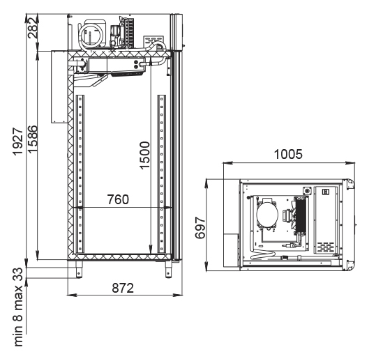 Каталог оборудования Холодильное оборудованиеШкафы холодильныеСпециализированные холодильные шкафыШкаф холодильный для вызревания сыра Polair CS107 Cheese черный, со стеклом Шкаф холодильный для вызревания сыра Polair CS107 Cheese черный, со стеклом Код товара: 062-626 Поделиться: WhatsAppTelegram СравнитьДобавить в КПВ избранное 0 389 300 ₽ В корзину 0 шт Под заказСамовывоз сегодня бесплатно Взять в кредит Купить в лизинг Получить консультацию в WhatsApp Описание Характеристики Отзывы 0 Инструкции 5 Шкаф холодильный для вызревания сыра Polair CS107 Cheese черный, со стеклом предназначен для создания оптимальных условий хранения и дозревания твердых и полутвердых сыров на предприятиях общественного питания и торговли. Монолитный цельнозаливной корпус снаружи изготовлен из стали с полимерным покрытием, внутри — из нержавеющей стали, дверь выполнена из стеклопакета. Оборудование рассчитано на работу при температуре окружающей среды до 40 °С. Особенности: Верхнее расположение агрегата для эффективного охлаждения Многофункциональная русифицированная панель управления с дисплеем диагональю 5" Возможность создания и сохранения собственных программ в памяти электронного блока Четыре перфорированные полки из нержавеющей стали для удобного размещения сыров Встроенный ультразвуковой увлажнитель (требуется подключение к системе очищенной воды и централизованной канализации) Распашная дверь с заливной теплоизоляцией и заменяемым уплотнителем с магнитной вставкой Встроенная ручка для удобства эксплуатации Отключаемая внутренняя LED-подсветка Штампованное углубление в дне корпуса для облегчения ухода Педаль для бесконтактного открывания двери Регулировка уровня влажности от 60% до 95% Максимальная нагрузка на полку — 40 кг Толщина стенок корпуса — 43 мм Polair CS107 Cheese черный, со стеклом — это высокотехнологичное оборудование, которое создает идеальные условия для дозревания и хранения твердых и полутвердых сыров. Надежная конструкция, продвинутые системы увлажнения и управления обеспечивают сохранение качества и вкуса сырной продукции, повышая эффективность работы предприятий общественного питания и торговли.Изображение товара, представленного на фото, может отличаться от его фактического вида. Показать все Габаритные размеры697×1005×1960 ммДиапазон рабочей температурыот -2 до +30 °CДлина697 ммШирина1005 ммВысота1960 ммОбъём700 лКол-во дверей1 Тип двериСтеклянная Количество полок4 штДопустимая нагрузка на полку40 кгУровень влажностиот 60 до 95 %Холодильный агрегатВстроенный Тип оттайкиАвтоматическая Тип охлажденияДинамическое ПодсветкаЕсть ХладагентR290 Вес нетто160 кгВес брутто190 кгБрендPolairВсе специализированные холодильные шкафы Из нержавейкиВсе специализированные холодильные шкафы Стеклянная дверь Оставить отзыв Еще никто не оставил отзыв на этот товар Схема POLAIR CS107 Cheese.jpgИнструкция на POLAIR CS107 Cheese.pdfБрошюра на POLAIR CS107 Cheese.pdfДекларация о соответствии.pdfСертификат соответствия.pdf Похожие товары Перейти в каталог Под заказ 385 475 ₽ Шкаф холодильный для вызревания сыра Polair CS107 Cheese полки окраш. Под заказ 397 800 ₽ Шкаф холодильный для вызревания сыра Polair CS107 Cheese полки нерж., со стеклом Под заказ 389 300 ₽ Шкаф холодильный для вызревания сыра Polair CS107 Cheese черный, со стеклом Под заказ 207 942 ₽ Шкаф холодильный HURAKAN HKN-MA350 для созревания мяса Под заказ 252 314 ₽ Шкаф холодильный для выз