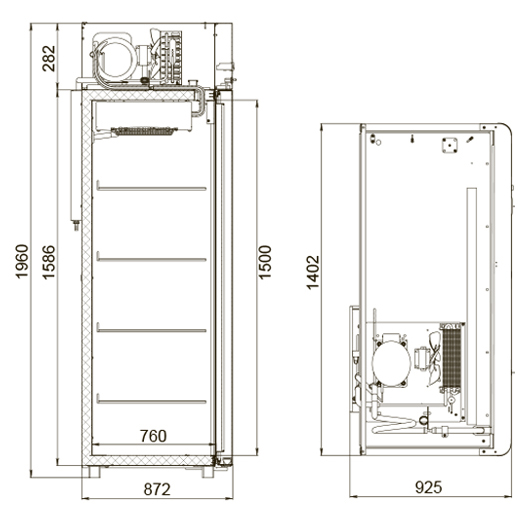 Каталог оборудования Холодильное оборудованиеШкафы холодильныеШкафы холодильные универсальные от -5 до +5 °СШкаф холодильный универсальный Polair CV114-Gm Alu Шкаф холодильный универсальный Polair CV114-Gm Alu Код товара: 062-614 Поделиться: WhatsAppTelegram СравнитьДобавить в КПВ избранное 0 204 204 ₽ В корзину 0 шт Под заказСамовывоз сегодня бесплатно Взять в кредит Купить в лизинг Получить консультацию в WhatsApp Описание Характеристики Отзывы 0 Инструкции 4 Шкаф холодильный универсальный Polair CV114-Gm Alu предназначен для демонстрации и хранения продуктов на предприятиях общественного питания и торговли. Цельнозаливной корпус изготовлен из нержавеющей стали снаружи и внутри (кроме задней стенки), что обеспечивает исключительную прочность, долговечность и легкость ухода. Алюминиевые профили дверей и верхней панели подчеркивают современный, премиальный стиль. Шкаф эффективно работает при температуре окружающей среды до 40 °C и относительной влажности воздуха до 80%, что делает его надежным решением даже в жарких помещениях. Особенности: Многофункциональная контрольная панель с терморегулятором для точной настройки температурных режимов. Возможность подключения к системам дистанционного мониторинга и записи данных (с помощью сетевой карты), а также передача информации через Bluetooth — это значительно упрощает контроль и обслуживание оборудования. Жидкокристаллический дисплей для удобного отображения информации. Клапан Шредера и компенсационный клапан с ПЭНом обогрева, обеспечивающие надежность и стабильность работы. Наличие ПЭНов обогрева (дверного проема, трубки слива конденсата, клапана) предотвращает образование наледи и конденсата. Распашной тип двери с полностью интегрированными ручками для удобного и безопасного открытия. Эластичные магнитные уплотнители, обеспечивающие плотное прилегание дверей и отличную герметизацию. Внутренняя LED-подсветка для качественного освещения содержимого. Микропереключатель, который при открытии двери автоматически останавливает вентилятор воздухоохладителя и включает подсветку. Регулируемые по высоте ножки для устойчивости на любых поверхностях. Педаль для открытия двери, позволяющая открывать шкаф без помощи рук. Встроенный замок для защиты содержимого. Количество полок: 8, каждая выдерживает нагрузку до 40 кг. Размер полки: GN 2/1 (530×650 мм). Толщина стенки корпуса: 43 мм, что способствует высокой теплоизоляции и энергоэффективности. Polair CV114-Gm Alu — это профессиональное оборудование, сочетающее передовые технологии, премиальный дизайн и высокий уровень надежности. Возможность дистанционного мониторинга и передачи данных, прочный корпус из нержавеющей стали и продуманная система обогрева делают этот шкаф идеальным выбором для предприятий, которые ценят функциональность, долговечность и удобство эксплуатации.Изображение товара, представленного на фото, может отличаться от его фактического вида. Показать все Габаритные размеры1402×925×1960 ммДиапазон рабочей температурыот -5 до +5 °CДлина1402 ммГлубина925 ммВысота695 ммОбъём1400 лРазмер полки530×650 ммКоличество полок8 штКоличество дверей2 штТип оттайкиАвтоматическая Тип охлажденияДинамическое Тип управленияЭлектронное Материал корпусаНержавеющая сталь Тип двериМеталлическая ЗамокЕсть Способ открыванияРаспашные ХладагентR290 Холодильный агрегатВстроенный Ра