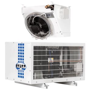 Эта модель, усовершенствованная версия серии GS, состоит из внутреннего (воздухоохладитель, устанавливается на потолке камеры) и наружного (компрессорно-конденсаторный, размещается на любой горизонтальной поверхности, даже удаленно) блоков.