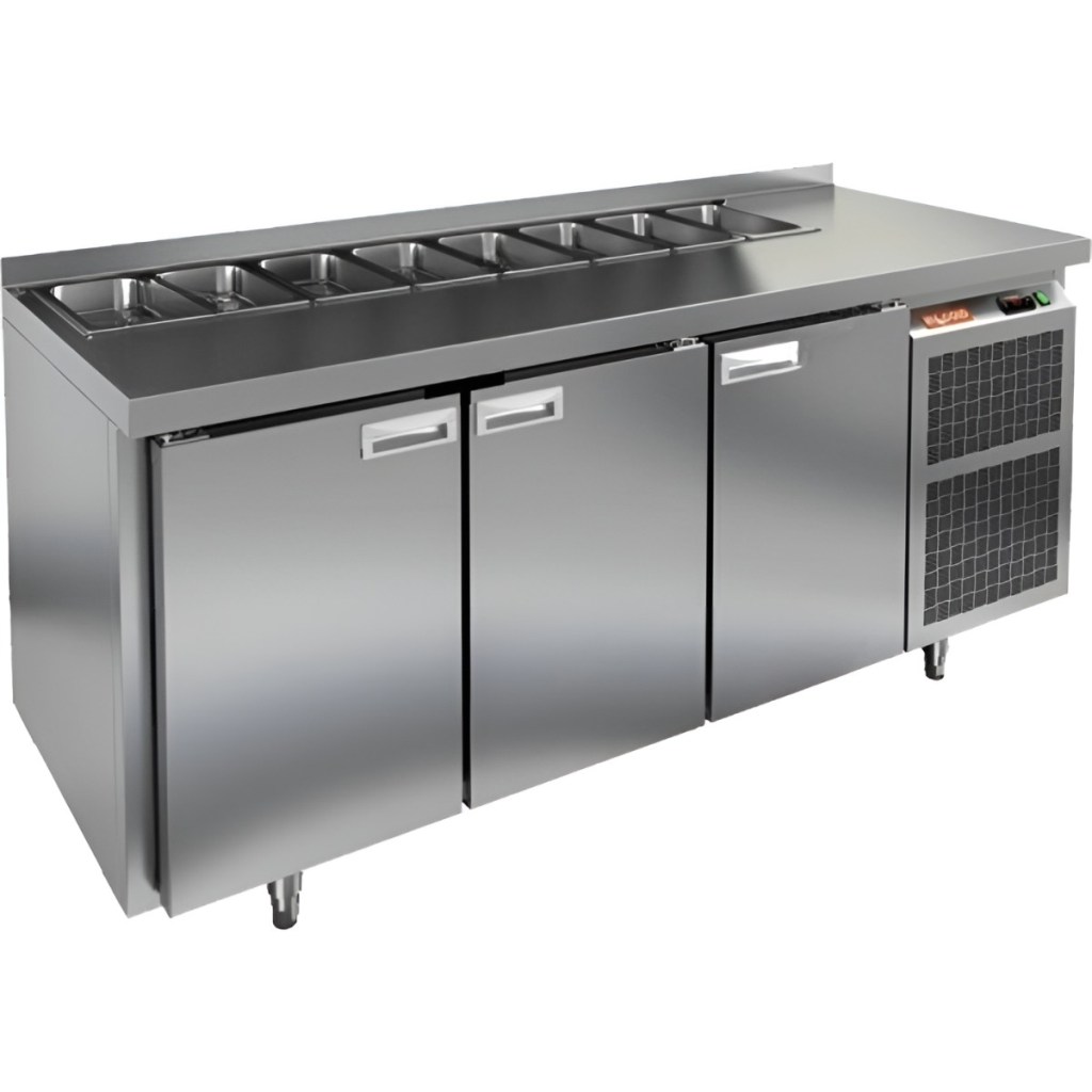 Каталог оборудования Холодильное оборудованиеСтолы охлаждаемыеСтолы холодильные для салатовСтол холодильный для салатов HiCold SL1-111GN (1/3) без крышки Стол холодильный для салатов HiCold SL1-111GN (1/3) без крышки Код товара: 064-517 Поделиться: WhatsAppTelegram СравнитьДобавить в КПВ избранное 0 163 612 ₽ В корзину 0 шт Под заказСамовывоз сегодня бесплатно Взять в кредит Купить в лизинг Получить консультацию в WhatsApp Описание Характеристики Отзывы 0 Инструкции 2 Стол холодильный для салатов HiCold SL1-111GN (1/3) без крышки предназначен для предприятий общественного питания и торговли. Он обеспечивает хранение и подготовку ингредиентов для пиццы, салатов и других блюд, а также охлаждение и кратковременное хранение скоропортящихся продуктов. Модель сочетает рабочую поверхность и холодильный объем, позволяя повару иметь все необходимые компоненты под рукой. Корпус и столешница выполнены из нержавеющей стали, обеспечивая надежность и долговечность. Особенности: Динамическая система охлаждения — равномерное распределение температуры внутри холодильного объема. Автоматическая оттайка — упрощает уход за оборудованием. Электронная панель управления — точная настройка температуры и режимов работы. 3 вместительные внутренние полки формата GN 1/1 — удобное хранение ингредиентов. Автоматические доводчики дверей с фиксатором открытого положения — комфорт и безопасность работы. Легкозаменяемые магнитные уплотнители — простота обслуживания. Открытая агрегатная часть — облегчает доступ для обслуживания. Регулируемые по высоте ножки — адаптация к рабочей поверхности. Столешница с бортом, толщина столешницы и теплоизоляции 50 мм — надежная защита и удобство работы. Размер полки: 530×325мм (GN 1/1) Максимальная глубина гастроемкостей: 100 мм HiCold SL1-111GN (1/3) без крышки — многофункциональный и надежный стол для профессиональной кухни. Обеспечивает удобство работы, эффективное охлаждение и безопасное хранение продуктов. Мобильная модификация с колёсами позволяет легко перемещать стол, что делает его идеальным для ресторанов, кафе и пиццерий.Изображение товара, представленного на фото, может отличаться от его фактического вида. Показать все Габаритные размеры1835×700×850 ммДиапазон рабочей температурыот +2 до +10 °CРасположение агрегатаБоковое Материал столешницыНержавеющая Тип столаС дверьми Тип двериГлухая Объём505 лКоличество дверей3 штТип гастроемкостейGN 1/3 Размер полки530×325 ммНапряжение220 ВМощность0,46 кВтТип охлажденияДинамический Тип оттайкиАвтоматическая СтолешницаС бортом Вес нетто120 кгВес брутто183 кгБрендHicold Оставить отзыв Еще никто не оставил отзыв на этот товар Паспорт на HICOLD SL1-111GN.pdfДекларация о соответствии.pdf Ранее просмотрено Под заказ 290 692 ₽ Стол холодильный для салатов HiCold SL1-332GN (1/3) с крышкой Под заказ 151 462 ₽ Стол холодильный для салатов HiCold SLS2-11GN (1/6) с крышкой Под заказ 201 682 ₽ Стол холодильный для салатов HiCold SL2-22GN (1/6) без крышки Под заказ 243 982 ₽ Стол холодильный для салатов HiCold SL2-321GN (1/6) с крышкой Под заказ 140 032 ₽ Стол холодильный для салатов HiCold SL2-11SN (1/6) без крышки Под заказ 164 961 ₽ Стол холодильный для салатов HiCold SL2-11SN (1/6) М с крышкой Под заказ 178 192 ₽ Стол холодильный для салатов HiCold SLE1-112GN (1/3) О с крышкой