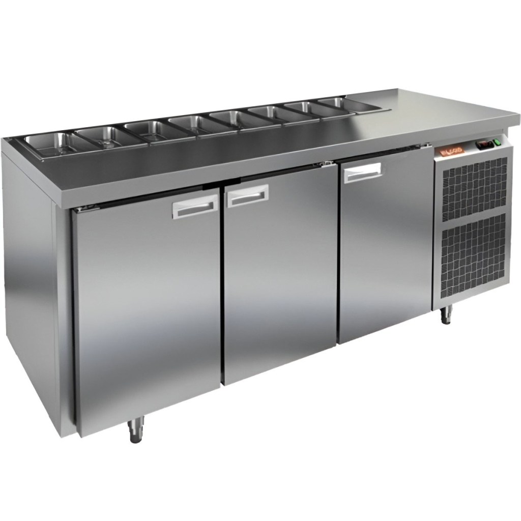 Каталог оборудования Холодильное оборудованиеСтолы охлаждаемыеСтолы холодильные для салатовСтол холодильный для салатов HiCold SL1-111SN (1/3) О без крышки Стол холодильный для салатов HiCold SL1-111SN (1/3) О без крышки Код товара: 064-522 Поделиться: WhatsAppTelegram СравнитьДобавить в КПВ избранное 0 163 162 ₽ В корзину 0 шт Под заказСамовывоз сегодня бесплатно Взять в кредит Купить в лизинг Получить консультацию в WhatsApp Описание Характеристики Отзывы 0 Инструкции 2 Стол холодильный для салатов HiCold SL1-111SN (1/3) О без крышки предназначен для предприятий общественного питания и торговли. Он обеспечивает хранение и подготовку ингредиентов для пиццы, салатов и других блюд, а также охлаждение и кратковременное хранение скоропортящихся продуктов. Модель сочетает рабочую поверхность и холодильный объем, позволяя повару иметь все необходимые компоненты под рукой. Корпус и столешница выполнены из нержавеющей стали, обеспечивая надежность и долговечность. Особенности: Динамическая система охлаждения — равномерное распределение температуры внутри холодильного объема. Автоматическая оттайка — упрощает уход за оборудованием. Электронная панель управления — точная настройка температуры и режимов работы. 3 вместительные внутренние полки формата GN 1/1 — удобное хранение ингредиентов. Автоматические доводчики дверей с фиксатором открытого положения — комфорт и безопасность работы. Легкозаменяемые магнитные уплотнители — простота обслуживания. Открытая агрегатная часть — облегчает доступ для обслуживания. Регулируемые по высоте ножки — адаптация к рабочей поверхности. Столешница без борта и без крышки, толщина столешницы и теплоизоляции 50 мм — надежная защита и удобство работы. Размер полки: 430×320мм (GN 1/1) Максимальная глубина гастроемкостей: 100 мм HiCold SL1-111SN (1/3) О без крышки — многофункциональный и надежный стол для профессиональной кухни. Обеспечивает удобство работы, эффективное охлаждение и безопасное хранение продуктов. Мобильная модификация с колёсами позволяет легко перемещать стол, что делает его идеальным для ресторанов, кафе и пиццерий.Изображение товара, представленного на фото, может отличаться от его фактического вида. Показать все Габаритные размеры1835×600×850 ммДиапазон рабочей температурыот +2 до +10 °CРасположение агрегатаБоковое Материал столешницыНержавеющая Тип столаС дверьми Тип двериГлухая Объём435 лКоличество дверей3 штТип гастроемкостейGN 1/3 Размер полки430×320 ммНапряжение220 ВМощность0,46 кВтТип охлажденияДинамический Тип оттайкиАвтоматическая СтолешницаБез борта Вес нетто120 кгВес брутто183 кгБрендHicold Оставить отзыв Еще никто не оставил отзыв на этот товар Паспорт на HICOLD SL1-111SN О.pdfДекларация о соответствии.pdf Ранее просмотрено Под заказ 201 682 ₽ Стол холодильный для салатов HiCold SL2-22GN (1/6) О без крышки Под заказ 174 952 ₽ Стол холодильный для салатов HiCold SLE2-111GN (1/6) О З М с крышкой