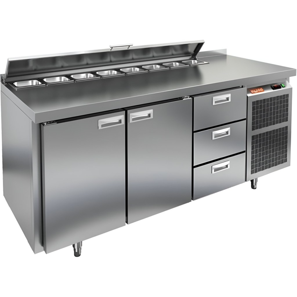 Каталог оборудования Холодильное оборудованиеСтолы охлаждаемыеСтолы холодильные для салатовСтол холодильный для салатов HiCold SL1-113GN (1/3) с крышкой Стол холодильный для салатов HiCold SL1-113GN (1/3) с крышкой Код товара: 064-842 Поделиться: WhatsAppTelegram СравнитьДобавить в КПВ избранное 0 214 192 ₽ В корзину 0 шт Под заказСамовывоз сегодня бесплатно Взять в кредит Купить в лизинг Получить консультацию в Max Описание Характеристики Отзывы 0 Стол холодильный для салатов HiCold SL1-113GN (1/3) предназначен для использования на предприятиях общественного питания и торговли. Он объединяет рабочую поверхность и охлаждаемый отсек, что делает его удобным решением для хранения, охлаждения и подготовки ингредиентов при приготовлении салатов, пиццы и других блюд. Такая конструкция позволяет повару работать быстрее и эффективнее, так как все необходимые продукты находятся под рукой. Корпус и столешница выполнены из прочной нержавеющей стали, устойчивой к коррозии и легко поддающейся санитарной обработке. Металлическая крышка защищает продукты от загрязнений и сохраняет их свежесть. Особенности модели: Электронная панель управления — точная настройка температурного режима. 2 глухие двери — удобный доступ к холодильному отсеку. 3 выдвижных ящика — быстрое размещение и замена продуктов. Вместимость салат-бара — до 8 гастроемкостей глубиной до 100 мм. Автоматические доводчики дверей с фиксацией в открытом положении. Легкозаменяемые магнитные уплотнители — надежная герметичность. Открытая агрегатная часть — быстрый доступ для обслуживания. Регулируемые по высоте ножки — устойчивость даже на неровном полу. Толщина столешницы, борта и теплоизоляции — 50 мм, что обеспечивает прочность и энергоэффективность конструкции. HiCold SL1-113GN (1/3) — практичное и удобное решение для профессиональной кухни, обеспечивающее удобную подготовку и хранение ингредиентов.Изображение товара, представленного на фото, может отличаться от его фактического вида. Показать все Габаритные размеры1835×700×850 ммДиапазон рабочей температурыот +2 до +10 °CРасположение агрегатаБоковое Материал столешницыНержавеющая Тип столаС дверьми и ящиками Тип двериГлухая Объём505 лКоличество дверей2 штТип гастроемкостейGN 1/3 Количество ящиков3 штРазмер полки530×325 ммНапряжение220 ВМощность0,46 кВтТип охлажденияДинамическое Тип оттайкиАвтоматическая СтолешницаС бортом Вес нетто120 кгВес брутто140 кгБрендHicold Оставить отзыв Еще никто не оставил отзыв на этот товар Ранее просмотрено В наличии 143 722 ₽ Стол холодильный для салатов HiCold SL1-11GN (1/3) с крышкой Под заказ 320 122 ₽ Стол холодильный для салатов HiCold SL2-2222GN (1/6) с крышкой