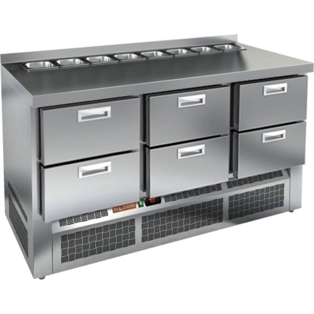 Стол холодильный для салатов HiCold SLE2-222GN (1/6) без крышки — это профессиональный салатный стол, предназначенный для использования в кафе, ресторанах, пиццериях и других предприятиях общественного питания. Он совмещает в себе просторную рабочую поверхность и охлаждаемый объем, обеспечивая удобство и эффективность при приготовлении различных блюд — от салатов до пиццы.