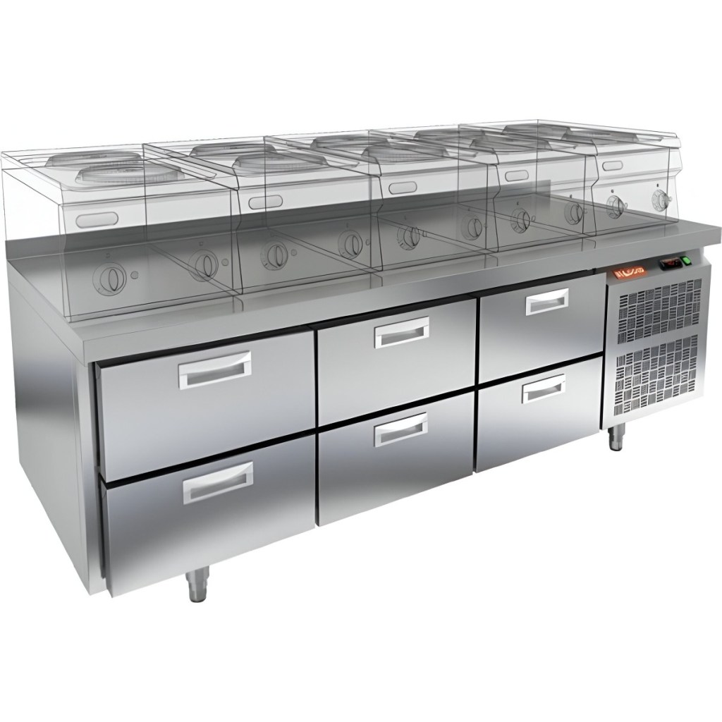 Каталог оборудования Холодильное оборудованиеСтолы охлаждаемыеСтолы холодильные под тепловое оборудованиеСтол охлаждаемый HiCold GN 222/TN LT под тепловое оборудование, без столещницы Стол охлаждаемый HiCold GN 222/TN LT под тепловое оборудование, без столещницы Код товара: 065-446 Поделиться: WhatsAppTelegram СравнитьДобавить в КПВ избранное 0 220 942 ₽ В корзину 0 шт Под заказСамовывоз сегодня бесплатно Взять в кредит Купить в лизинг Получить консультацию в WhatsApp Описание Характеристики Отзывы 0 Инструкции 2 Стол охлаждаемый HiCold GN 222/TN LT под тепловое оборудование, без столещницы предназначен для обработки продуктов и временного хранения скоропортящихся ингредиентов и напитков на предприятиях общественного питания и торговли. Устройство совмещает функции холодильной камеры и рабочей поверхности, что делает его особенно удобным для профессиональных кухонь. Столешница рассчитана на установку теплового оборудования: под рабочей поверхностью встроен ДСП-лист, который укрепляет конструкцию и препятствует проникновению тепла внутрь. Такое решение обеспечивает дополнительную жесткость, позволяет рационально использовать рабочее пространство и повышает эффективность работы на кухне. Внимание! На изображении показана аналогичная модель в комплектации со столешницей. Особенности: 6 выдвижных ящиков обеспечивают удобный доступ к продуктам и рациональную организацию пространства Автоматические доводчики дверей с фиксатором открытого положения улучшают эргономику работы и помогают сохранить холод внутри камеры. Легкозаменяемые магнитные уплотнители способствуют герметичности и простоте технического обслуживания. Регулируемые по высоте ножки позволяют адаптировать установку под особенности помещения. Толщина теплоизоляции — 50 мм способствует энергоэффективности и поддержанию стабильной температуры. Температурный диапазон окружающей среды — от 12 до 37 °C, что делает оборудование универсальным в разных климатических условиях. HiCold GN 222/TN LT без столещницы сочетает функциональность, надёжность и простоту в обслуживании. Идеально подходит для кухонь ресторанов, кафе и других заведений общепита, где важно одновременно эффективно хранить продукты и иметь под рукой рабочее пространство.Изображение товара, представленного на фото, может отличаться от его фактического вида. Показать все Габаритные размеры1835×700×675 ммДиапазон рабочей температурыот -2 до +10 °CМатериал столешницыНержавеющая Расположение агрегатаБоковое Объём375 лТип столаС ящиками Количество ящиков6 штНапряжение220 ВМощность0,46 кВтТип охлажденияДинамический Тип оттайкиАвтоматическая СтолешницаС бортом Габариты в упаковке2000×850×850 ммВес нетто104 кгВес брутто150 кгБрендHicold Оставить отзыв Еще никто не оставил отзыв на этот товар Паспорт на HICOLD GN 222/TN LT.pdfДекларация о соответствии.pdf Похожие товары Перейти в каталог Под заказ 137 619 ₽ Стол холодильный среднетемпературный Polair TD3GN-G Под заказ 108 164 ₽ Стол холодильный среднетемпературный HURAKAN HKN-GN3TN С этим товаром покупают Под заказ 389 300 ₽ Шкаф холодильный для вызревания мяса Polair CS107 Meat (Тип 1) Ранее просмотрено Под заказ 113 700 ₽ Витрина кондитерская Carboma KC70 VH 0,6-1 Light Chocolate (9006-9005) (ВХСв-0,6д Carboma Сube ТЕХНО) Под заказ 187 800 ₽ Витрина кондитерская Carboma D4 VM 800-1 (R800C Carboma) (0109-0102 (коричн-золот)) 4 дверцы, стеклянные полки