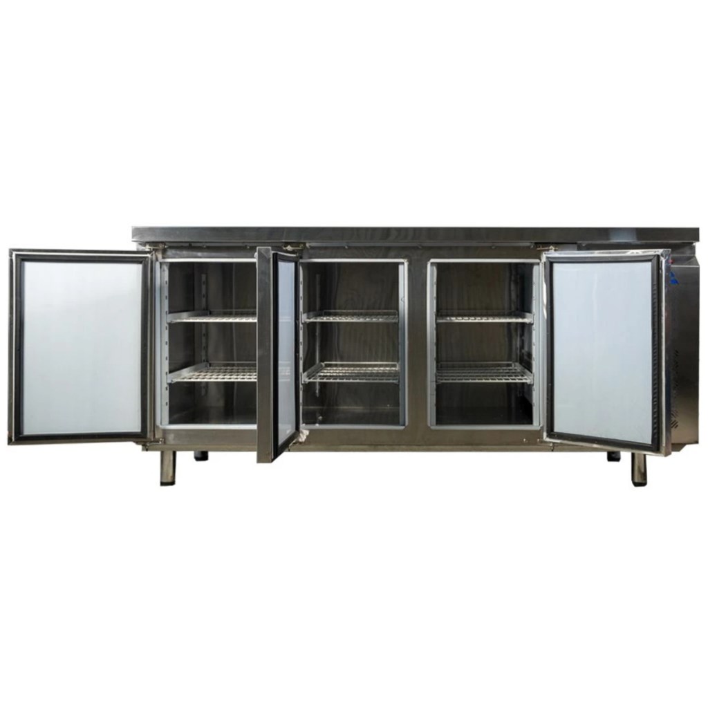 Каталог оборудования Холодильное оборудованиеСтолы охлаждаемыеСтолы холодильные среднетемпературныеСтол холодильный среднетемпературный Ангара СХБ 1,835-700 Стол холодильный среднетемпературный Ангара СХБ 1,835-700 Код товара: 066-353 Поделиться: WhatsAppTelegram СравнитьДобавить в КПВ избранное 0 119 100 ₽ В корзину 0 шт В наличииСамовывоз сегодня бесплатно Взять в кредит Купить в лизинг Получить консультацию в WhatsApp Описание Характеристики Отзывы 0 Стол холодильный среднетемпературный Ангара СХБ 1,835-700 предназначен для обработки ингредиентов и кратковременного хранения скоропортящихся продуктов и напитков на предприятиях общественного питания и торговли. Модель сочетает компактные размеры, функциональность и надёжность, обеспечивая удобство работы на кухне. Особенности модели: Электронное управление — интуитивно понятная панель позволяет точно регулировать температурный режим и контролировать работу устройства. Корпус и столешница из нержавеющей стали — обеспечивают долговечность, устойчивость к коррозии и лёгкость в уходе. Три дверцы и три полки размером 530×325 мм — обеспечивают удобный доступ к продуктам и рациональное использование внутреннего пространства. Регулируемые ножки — позволяют адаптировать высоту стола под индивидуальные условия рабочей зоны. Автоматические доводчики дверей с фиксацией — двери закрываются плавно и остаются зафиксированными в открытом положении при необходимости. Съёмные магнитные уплотнители — упрощают чистку и замену, поддерживая герметичность и эффективность охлаждения. Диапазон температур: -2…+10 °C / +2…+10 °C, что позволяет использовать стол как для охлаждённых, так и для быстро портящихся продуктов. Холодильный стол Ангара СХБ 1,835-700 — это практичное и надёжное решение для профессиональных кухонь и торговых точек. Совмещение эргономичной конструкции, долговечных материалов и точного электронного контроля температуры обеспечивает удобство эксплуатации и эффективное хранение продуктов в оптимальных условиях.Изображение товара, представленного на фото, может отличаться от его фактического вида. Показать все Габаритные размеры1835×700×850 ммДиапазон рабочей температурыот -2 до +10 °CРасположение агрегатаБоковое Материал столешницыНержавеющая Тип столаС дверьми Тип двериГлухая Объём505 лКоличество дверей3 штКоличество полок3 штРазмер полки530×325 ммНапряжение220 ВМощность0,46 кВтТип охлажденияДинамическое Тип оттайкиАвтоматическая СтолешницаС бортом БрендАнгараВсе нержавеющие холодильные столы Все холодильные столы с бортом Оставить отзыв Еще никто не оставил отзыв на этот товар Ранее просмотрено В наличии 118 900 ₽ Стол холодильный среднетемпературный Ангара СХБ 1,835-600 В наличии 106 400 ₽ Стол морозильный Ангара СХН 1,0-600