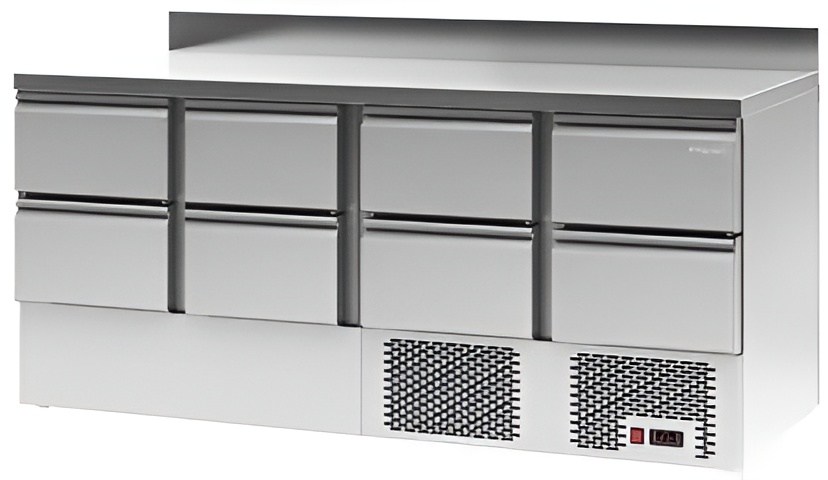 Каталог оборудования Холодильное оборудованиеСтолы охлаждаемыеСтолы холодильные среднетемпературныеСтол холодильный среднетемпературный Polair TMi4GN-2222-G Стол холодильный среднетемпературный Polair TMi4GN-2222-G Код товара: 062-578 Поделиться: WhatsAppTelegram СравнитьДобавить в КПВ избранное 0 265 574 ₽ В корзину 0 шт Под заказСамовывоз сегодня бесплатно Взять в кредит Купить в лизинг Получить консультацию в WhatsApp Описание Характеристики Отзывы 0 Стол холодильный среднетемпературный Polair TMi4GN-2222-G предназначен для хранения продуктов и подготовки ингредиентов на рабочей поверхности на предприятиях общественного питания и торговли. Цельнозаливные корпус и двери изготовлены из прочной стали, что обеспечивает высокую механическую прочность, надежную термоизоляцию, герметичность и долгий срок службы. Оборудование рассчитано на эксплуатацию при температуре окружающей среды до +43 °С и относительной влажности до 80%, что делает его отличным решением для профессиональных кухонь. Особенности: Электронный терморегулятор для точного и стабильного поддержания температуры; Класс защиты IP24, подходящий для работы в условиях повышенной влажности; Регулируемые по высоте ножки для удобства установки и устойчивости; Толщина столешницы — 40 мм, обеспечивающая прочность и устойчивость к нагрузкам; Толщина стенок корпуса — 43 мм для отличной теплоизоляции и долговечности; Тип полок: Gastronorm GN 1/1, удобный для использования стандартной гастроемкости; Оснащен 8 выдвижными ящиками, что значительно упрощает организацию хранения продуктов и обеспечивает быстрый доступ к ингредиентам. Polair TMi4GN-2222-G — это функциональный и надежный холодильный стол, который сочетает продуманную конструкцию с высокой вместимостью и удобством эксплуатации. Наличие восьми ящиков делает его особенно удобным для интенсивной работы на профессиональной кухне, где требуется быстрое и удобное хранение большого количества ингредиентов.Изображение товара, представленного на фото, может отличаться от его фактического вида. Показать все Габаритные размеры1850×700×910 ммДиапазон рабочей температурыот -2 до +10 °CРасположение агрегатаНижнее Материал столешницыНержавеющая Тип столаС ящиками Объём368 лКоличество ящиков8 штНапряжение220 ВМощность0,35 кВтТип охлажденияДинамическое Тип оттайкиАвтоматическая ХладагентR290 СтолешницаС бортом Габариты в упаковке2165×815×1045 ммВес нетто165 кгВес брутто200 кгБрендPolairВсе холодильные столы PolairВсе нержавеющие холодильные столы Все холодильные столы с бортом Оставить отзыв Еще никто не оставил отзыв на этот товар Ранее просмотрено Под заказ 327 080 ₽ Моноблок холодильный низкотемпературный Арктика ММH 450 (с зимним комплектом) Под заказ Цена по запросу Холодильная витрина МХМ Валенсия ВХСло-1,875 Под заказ 301 395 ₽ Стол морозильный низкотемпературный Polair TB4GN-2222-G Цена по запросу Горка холодильная Иней Lida-Stella 1,3/0,85 Под заказ 182 216 ₽ Откатная холодильная дверь Север НТ-ОХД 2400*2400/80 Под заказ 65 927 ₽ Запайщик лотков HURAKAN HKN-CPT2K 210×148