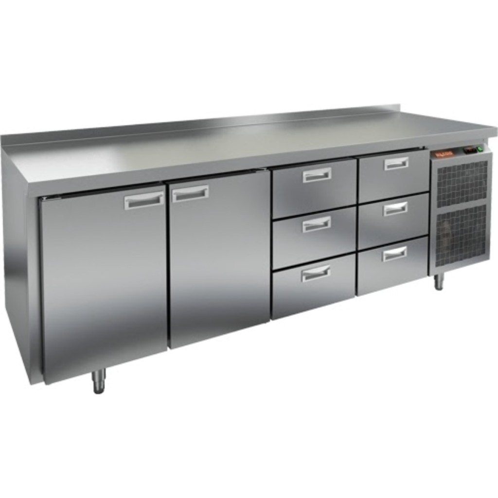 Каталог оборудования Холодильное оборудованиеСтолы охлаждаемыеСтолы морозильные низкотемпературныеСтол морозильный HiCold SN 1133/BT Стол морозильный HiCold SN 1133/BT Код товара: 065-191 Поделиться: WhatsAppTelegram СравнитьДобавить в КПВ избранное 0 297 802 ₽ В корзину 0 шт Под заказСамовывоз сегодня бесплатно Взять в кредит Купить в лизинг Получить консультацию в WhatsApp Описание Характеристики Отзывы 0 Инструкции 2 Стол морозильный HiCold SN 1133/BT — это универсальное решение для профессиональных кухонь и предприятий общественного питания. Он объединяет рабочую поверхность для раскатки теста и подготовки ингредиентов с морозильной камерой для хранения продуктов и полуфабрикатов, что позволяет эффективно организовать рабочее место и ускорить процесс приготовления блюд. Особенности: Цельнозаливной корпус из нержавеющей стали с 50 мм изоляцией обеспечивает высокую герметичность и прочность конструкции. Электронный блок управления с повышенной надежностью и несколькими режимами оттаивания. Вентилятор увеличенной мощности и принудительная вентиляция по всему объему стола обеспечивают равномерное и быстрое охлаждение. Интеллектуальное размораживание для удобного и безопасного использования. Термическое выпаривание конденсата предотвращает образование влаги на рабочей поверхности. Новая экономичная модель компрессора снижает энергопотребление. Облегченный доступ к агрегату упрощает сервисное обслуживание. Двери с петлями-доводчиками и ПЭН (проволочный электронагреватель) по контуру стола предотвращают примерзание. Максимальная нагрузка на полку — 50 кг, что позволяет хранить тяжелые продукты и оборудование. Высота борта рабочей поверхности — 50 мм, обеспечивающая удобство работы и предотвращение скатывания ингредиентов. Рабочая температура окружающего воздуха — от 12 до 32 °C, что делает стол универсальным для различных условий эксплуатации. HiCold SN 1133/BT сочетает функциональность морозильной камеры и удобство рабочей поверхности. Прочные материалы, интеллектуальные системы охлаждения и размораживания, а также продуманные детали конструкции делают его надежным и долговечным оборудованием. Этот стол оптимален для предприятий общественного питания, где требуется быстрое охлаждение, заморозка и комфортная организация рабочего процесса.Изображение товара, представленного на фото, может отличаться от его фактического вида. Показать все Габаритные размеры2280×600×850 ммДиапазон рабочей температурыот -18 до -10 °CРасположение агрегатаБоковое Материал столешницыНержавеющая Тип столаС ящиками Тип двериГлухая Объём570 лКоличество дверей2 штКоличество полок2 штКоличество ящиков6 штРазмер полки430×325 ммНапряжение220 ВМощность0,75 кВтТип охлажденияДинамический Тип оттайкиАвтоматическая СтолешницаС бортом Габариты в упаковке2400×750×1000 ммВес нетто151 кгВес брутто249 кгБрендHicoldВсе морозильные столы HicoldВсе морозильные столы с бортом Оставить отзыв Еще никто не оставил отзыв на этот товар Паспорт на HICOLD SN 1133/BT.pdfДекларация о соответствии.pdf Похожие товары Перейти в каталог Под заказ 79 911 ₽ Стол холодильный среднетемпературный HiCold GN 1/TN W Под заказ 104 947 ₽ Стол холодильный среднетемпературный Abat СХС-70 с бортом (дверь) С этим товаром покупают В наличии 96 390 ₽ Шкаф холодильный Полюс Carboma R560 В наличии 58 095 ₽ Витрина холодильная для ингредиентов HICOLD VRTU 1835 1/3 Ране