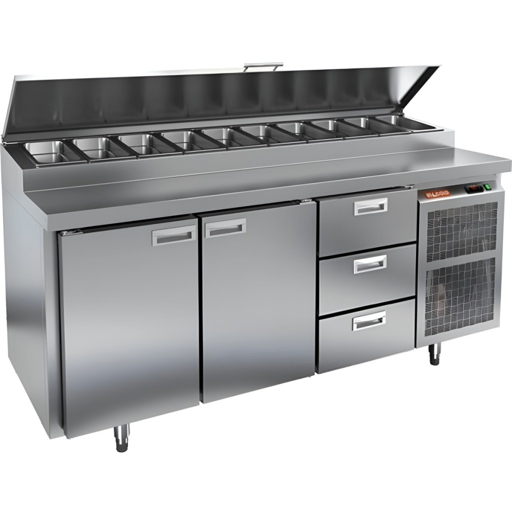 Каталог оборудования Холодильное оборудованиеСтолы охлаждаемыеСтолы холодильные для пиццыСтол холодильный для пиццы HiCold PZ1-113GN (1/3H) Стол холодильный для пиццы HiCold PZ1-113GN (1/3H) Код товара: 064-692 Поделиться: WhatsAppTelegram СравнитьДобавить в КПВ избранное 0 260 272 ₽ В корзину 0 шт Под заказСамовывоз сегодня бесплатно Взять в кредит Купить в лизинг Получить консультацию в WhatsApp Описание Характеристики Отзывы 0 Инструкции 2 Стол холодильный для пиццы HiCold PZ1-113GN (1/3H) — профессиональное оборудование для ресторанов, кафе и предприятий торговли. Он совмещает рабочую поверхность для раскатки теста и подготовки ингредиентов с охлаждаемым блоком для кратковременного хранения продуктов и напитков. Корпус и столешница выполнены из нержавеющей стали, что гарантирует долговечность и лёгкость ухода. Основные особенности: Динамическая система охлаждения — равномерное распределение холода Автоматическая оттайка — поддержка стабильной работы без наледи Электронная панель управления — точная настройка температуры и режимов 2 вместительные полки формата GN 1/1 3 выдвижных ящика для хранения дополнительных ингредиентов Автоматические доводчики дверей с фиксатором открытого положения — удобство загрузки и выгрузки Легкозаменяемые магнитные уплотнители — поддержание герметичности Открытая агрегатная часть — облегчённый доступ к техническим элементам Регулируемые по высоте ножки — установка по уровню Максимальная глубина гастроёмкостей: 150 мм (крайняя правая — 100 мм) Глубина рабочей поверхности: 324 мм Толщина столешницы и теплоизоляции: 50 мм Вместимость салат-бара: до 10 гастроёмкостей Стол холодильный HiCold PZ1-113GN (1/3H) — функциональный и удобный стол для пиццы и салатов, совмещающий рабочую поверхность, охлаждаемый блок, полки и ящики для хранения. Разная глубина гастроёмкостей и продуманная организация рабочего пространства делают его оптимальным решением для профессиональной кухни.Изображение товара, представленного на фото, может отличаться от его фактического вида. Показать все Габаритные размеры1835×700×1000 ммДиапазон рабочей температурыот +2 до +10 °CРасположение агрегатаБоковое Материал столешницыНержавеющая Тип столаС дверьми и ящиками Тип двериГлухая Объём505 лТип гастроемкостейGN 1/3 Количество дверей2 штКоличество ящиков3 штРазмер полки530×325 ммНапряжение220 ВМощность0,5 кВтТип охлажденияДинамическое Тип оттайкиАвтоматическая Габариты в упаковке2000×850×1140 ммВес нетто172 кгВес брутто200 кгБрендHicoldВсе холодильные столы для пиццы HicoldВсе нержавеющие холодильные столы для пиццы Оставить отзыв Еще никто не оставил отзыв на этот товар Паспорт на HICOLD PZ1-113GN.pdfДекларация о соответствии.pdf Ранее просмотрено Под заказ 206 541 ₽ Стол холодильный для пиццы HiCold PZ1-11GN (1/3) М