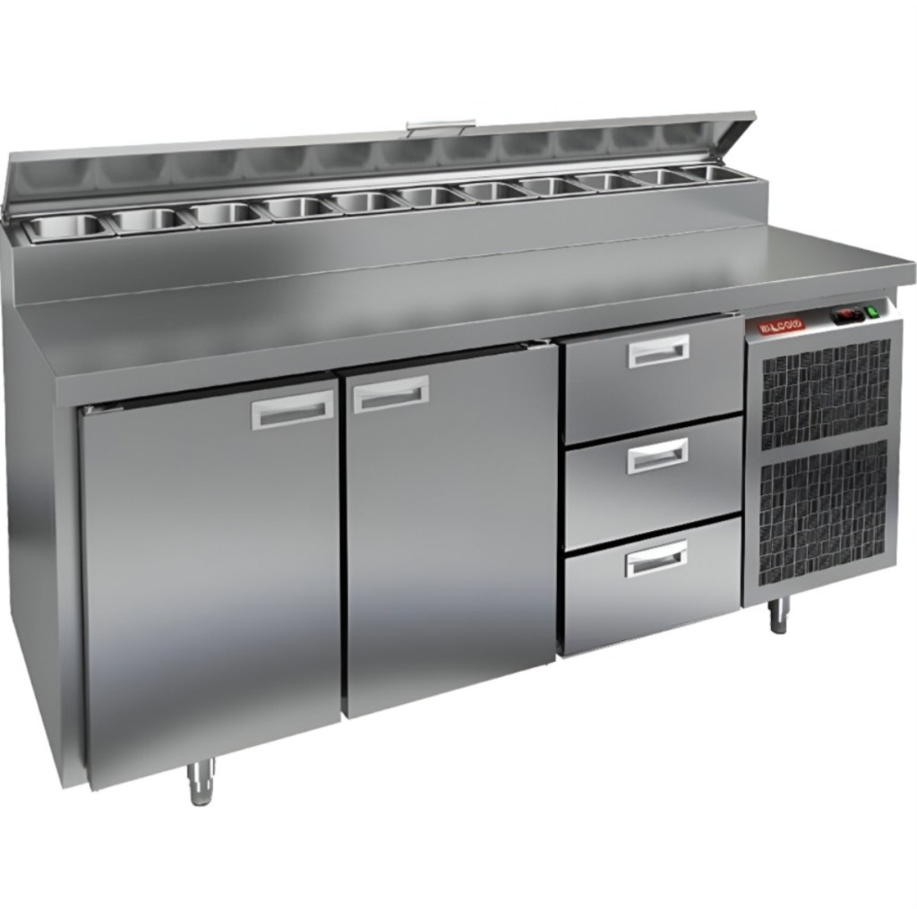 Каталог оборудования Холодильное оборудованиеСтолы охлаждаемыеСтолы холодильные для пиццыСтол холодильный для пиццы HiCold PZ2-113GN (1/6) Стол холодильный для пиццы HiCold PZ2-113GN (1/6) Код товара: 064-761 Поделиться: WhatsAppTelegram СравнитьДобавить в КПВ избранное 0 260 272 ₽ В корзину 0 шт Под заказСамовывоз сегодня бесплатно Взять в кредит Купить в лизинг Получить консультацию в WhatsApp Описание Характеристики Отзывы 0 Инструкции 2 Стол холодильный для пиццы HiCold PZ2-113GN (1/6) предназначен для кухонь и предприятий общественного питания. Он используется для раскатки теста, подготовки ингредиентов для пиццы, салатов и других блюд, а также для охлаждения и кратковременного хранения скоропортящихся продуктов. Модель совмещает нержавеющую рабочую поверхность и охлаждаемый отсек с 2 дверьми и 3 ящиками, обеспечивая удобный доступ к ингредиентам и эффективное хранение. Особенности: Динамическая система охлаждения для равномерного поддержания температуры Автоматическая оттайка для удобного обслуживания Электронная панель управления для точной настройки параметров Вместительная внутренняя полка формата GN 1/1 (размер 530×325 мм) 2 двери и 3 вместительных ящика для хранения ингредиентов Автоматические доводчики дверей с фиксатором открытого положения Легкозаменяемые магнитные уплотнители для герметичности Открытая агрегатная часть для легкого доступа к компонентам Регулируемые по высоте ножки для устойчивости Нержавеющая столешница глубиной 486 мм и толщиной 50 мм — устойчива к коррозии, легко моется и гигиенична Толщина теплоизоляции: 50 мм Максимальная глубина гастроемкостей: 100 мм Вместимость салат-бара: 11 гастроемкости Стол холодильный HiCold PZ2-113GN (1/6) — это надежный и функциональный стол для пиццы. Он объединяет рабочую поверхность и охлаждаемый отсек, упрощает хранение и подготовку ингредиентов, обеспечивает удобство работы повара и соответствует стандартам профессиональной кухни. Изображение товара, представленного на фото, может отличаться от его фактического вида. Показать все Габаритные размеры1835×700×1000 ммДиапазон рабочей температурыот +2 до +10 °CРасположение агрегатаБоковое Материал столешницыНержавеющая Тип столаС дверьми и ящиками Тип двериГлухая Объём505 лТип гастроемкостейGN 1/6 Количество дверей2 штКоличество ящиков3 штРазмер полки530×325 ммНапряжение220 ВМощность0,46 кВтТип охлажденияДинамическое Тип оттайкиАвтоматическая Вес нетто172 кгВес брутто210 кгБрендHicoldВсе холодильные столы для пиццы HicoldВсе нержавеющие холодильные столы для пиццы Оставить отзыв Еще никто не оставил отзыв на этот товар Паспорт на HICOLD PZ2-113GN.pdfДекларация о соответствии.pdf Ранее просмотрено Под заказ 147 321 ₽ Стол холодильный для пиццы HiCold PZ1-1GN (1/3) В наличии 250 642 ₽ Стол холодильный для пиццы HiCold PZ2-1111GN (1/6) Под заказ 217 161 ₽ Стол холодильный для пиццы HiCold PZE1-112GN (1/3)