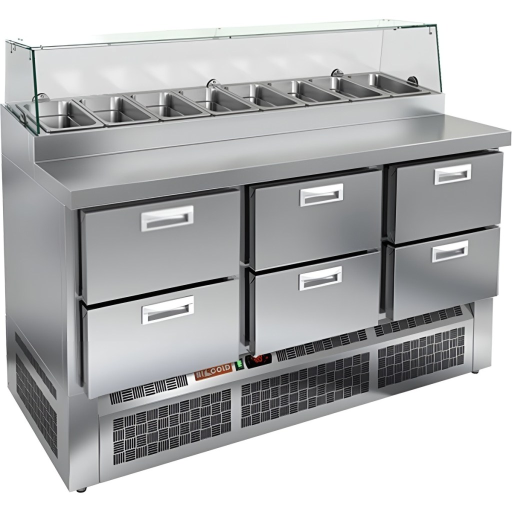 Стол холодильный для пиццы HiCold PZE1-222GN (1/3) стекло — профессиональное оборудование для предприятий общественного питания и торговли. Он сочетает рабочую поверхность для раскатки теста и подготовки ингредиентов с охлаждаемым блоком для кратковременного хранения скоропортящихся продуктов и напитков. Стеклянный купол защищает ингредиенты и обеспечивает их наглядную демонстрацию, а продуманная конструкция рабочих ящиков облегчает работу повара и обеспечивает быстрый доступ ко всем компонентам. Корпус и столешница выполнены из нержавеющей стали, что гарантирует долговечность, устойчивость к повреждениям и лёгкость ухода.