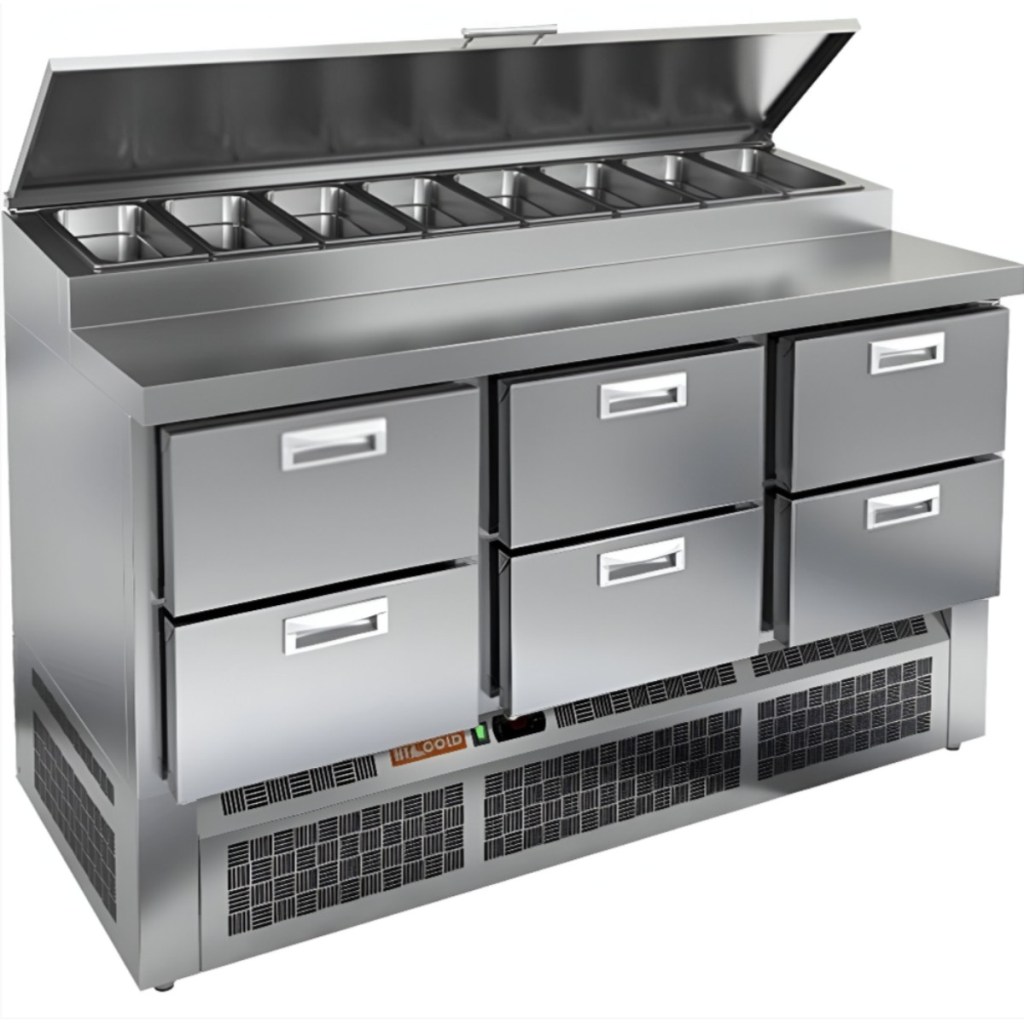 Каталог оборудования Холодильное оборудованиеСтолы охлаждаемыеСтолы холодильные для пиццыСтол холодильный для пиццы HiCold PZE1-222GN (1/3) Стол холодильный для пиццы HiCold PZE1-222GN (1/3) Код товара: 064-727 Поделиться: WhatsAppTelegram СравнитьДобавить в КПВ избранное 0 278 361 ₽ В корзину 0 шт Под заказСамовывоз сегодня бесплатно Взять в кредит Купить в лизинг Получить консультацию в WhatsApp Описание Характеристики Отзывы 0 Стол холодильный для пиццы HiCold PZE1-222GN (1/3) — профессиональное оборудование для предприятий общественного питания и торговли. Он предназначен для раскатки теста и подготовки ингредиентов, используемых при приготовлении пиццы, салатов и других блюд, а также для охлаждения и кратковременного хранения скоропортящихся продуктов и напитков. Совмещение рабочей поверхности и охлаждаемого блока значительно упрощает работу повара — все необходимые компоненты находятся под рукой. Корпус и столешница выполнены из нержавеющей стали, обеспечивая долговечность, устойчивость к повреждениям и лёгкость ухода. Основные особенности: Динамическая система охлаждения — равномерное распределение холода по всему объёму Автоматическая оттайка — стабильная работа без образования наледи Электронная панель управления — точная настройка температуры 6 выдвижных ящика — удобная организация внутреннего пространства Автоматические доводчики ящиков — комфорт при работе Легкозаменяемые магнитные уплотнители — поддержание герметичности Открытая агрегатная часть — лёгкий доступ к техническим элементам Регулируемые по высоте ножки — установка на неровных поверхностях Максимальная глубина гастроёмкостей: 100 мм Глубина рабочей поверхности: 324 мм Толщина столешницы: 50 мм Толщина теплоизоляции: 50 мм Вместимость салат-бара: до 8 гастроёмкостей HiCold PZE1-222GN (1/3) с четырьмя выдвижными ящиками — надёжный и функциональный холодильный стол для пиццы и салатов. Продуманная организация хранения и удобство эксплуатации обеспечивают быстрый доступ к ингредиентам и повышают производительность на профессиональной кухне.Изображение товара, представленного на фото, может отличаться от его фактического вида. Показать все Габаритные размеры1485×700×990 ммДиапазон рабочей температурыот +2 до +10 °CРасположение агрегатаНижнее Материал столешницыНержавеющая Тип столаС ящиками Объём375 лТип гастроемкостейGN 1/3 Количество ящиков6 штНапряжение220 ВМощность0,22 кВтТип охлажденияДинамическое Тип оттайкиАвтоматическая Габариты в упаковке1680×840×1170 ммВес нетто115 кгВес брутто153 кгБрендHicoldВсе холодильные столы для пиццы HicoldВсе нержавеющие холодильные столы для пиццы Оставить отзыв Еще никто не оставил отзыв на этот товар Ранее просмотрено Под заказ 434 242 ₽ Стол холодильный для пиццы HiCold PZ2-3333GN (1/6)