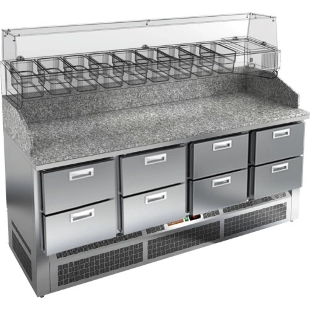 Каталог оборудования Холодильное оборудованиеСтолы охлаждаемыеСтолы холодильные для пиццыСтол холодильный для пиццы HiCold PZE3-222/GN камень Стол холодильный для пиццы HiCold PZE3-222/GN камень Код товара: 064-994 Поделиться: WhatsAppTelegram СравнитьДобавить в КПВ избранное 0 343 342 ₽ В корзину 0 шт Под заказСамовывоз сегодня бесплатно Взять в кредит Купить в лизинг Получить консультацию в WhatsApp Описание Характеристики Отзывы 0 Стол холодильный для пиццы HiCold PZE3-222/GN камень предназначен для использования в пиццериях, кафе, магазинах и ресторанах. Он идеально подходит для раскатки теста, подготовки ингредиентов для пиццы и кратковременного хранения скоропортящихся продуктов. Витрина приобретается отдельно. Особенности модели: Корпус: нержавеющая сталь — прочный, гигиеничный и долговечный Столешница: гранит — устойчива к царапинам, ударам и температурным нагрузкам Охлаждение: динамическое для равномерного поддержания температуры Оттайка: автоматическая — удобство и экономия времени Панель управления: электронная — точная настройка температуры Ножки: регулируемые по высоте — устойчивость на неровной поверхности Ящики: 6 выдвижных ящика — удобное хранение ингредиентов Уплотнители: легкозаменяемые магнитные — герметичность и простота обслуживания Толщина теплоизоляции: 50 мм — сохранение холода и энергоэффективность Рабочая поверхность: глубина 680 мм — удобство работы HiCold PZE3-222/GN камень — надёжный и функциональный холодильный стол с гранитной столешницей, который сочетает прочность, удобство в работе и эффективное охлаждение продуктов. Он станет универсальным решением для профессиональной кухни, где важны скорость, организация и сохранение свежести ингредиентов. Изображение товара, представленного на фото, может отличаться от его фактического вида. Показать все Габаритные размеры1485×700×1050 ммДиапазон рабочей температурыот +2 до +10 °CРасположение агрегатаНижнее Материал столешницыГранитная Тип столаС ящиками Объём375 лКоличество ящиков6 штРазмер полки530×325 ммНапряжение220 ВМощность0,2 кВтТип охлажденияДинамическое Тип оттайкиАвтоматическая Габариты в упаковке1700×850×1280 ммВес нетто227 кгВес брутто280 кгБрендHicoldВсе холодильные столы для пиццы HicoldВсе нержавеющие холодильные столы для пиццы Оставить отзыв Еще никто не оставил отзыв на этот товар Ранее просмотрено Под заказ 358 552 ₽ Стол холодильный для пиццы HiCold PZ3-222/GN камень