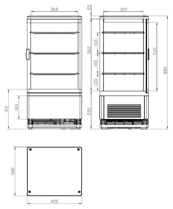 Каталог оборудования Холодильное оборудованиеВитрины настольныеВитрина холодильная настольная Cooleq CW-70 BLACK Витрина холодильная настольная Cooleq CW-70 BLACK Код товара: 065-642 Поделиться: WhatsAppTelegram 0 Цена по запросу Получить консультацию в WhatsApp Описание Характеристики Отзывы 0 Инструкции 3 Витрина холодильная настольная Cooleq CW-70 BLACK предназначена для демонстрации, охлаждения и кратковременного хранения напитков и продуктов на предприятиях общественного питания и торговли. Компактная модель отличается современным дизайном в чёрном цвете, оснащена LED-подсветкой для привлекательной презентации, регулятором температуры и замком для безопасности. Три регулируемые по высоте хромированные полки позволяют удобно организовать внутреннее пространство. Особенности: Динамическое охлаждение для равномерного распределения температуры. Закрываемая на ключ дверь. Хладагент: R600a, количество — 40 г. Климатический класс: 4. Размер полок: 365×307 мм, регулировка по высоте. LED-подсветка для улучшенной демонстрации продукции. Цвет корпуса: чёрный. Cooleq CW-70 BLACK — это стильная и функциональная холодильная витрина, которая сочетает компактность, удобство эксплуатации и современный дизайн, делая продукцию более привлекательной для покупателей.Изображение товара, представленного на фото, может отличаться от его фактического вида. Показать все Габаритные размеры428×386×885 ммДиапазон рабочей температурыот +0 до +12 °CДлина428 ммГлубина386 ммВысота885 ммРазмещениеВертикальная Полезный объем витрины0,068 м³Тип охлажденияДинамическое Климатический класс4 ХладагентR134a Номинальная потребляемая мощность0,18 Напряжение220 ВТип оттайкиАвтоматическая Количество полок3 штГабариты в упаковке475×447×986 ммВес нетто32 кгВес брутто35 кгБрендCooleqВсе витрины холодильные настольные CooleqВсе холодильные настольные витриныВсе витрины настольные для выпечкиВсе настольные витрины для десертовВсе стеклянные настольные витриныВсе вертикальные настольные витрины Оставить отзыв Еще никто не оставил отзыв на этот товар Инструкция на Cooleq CW-70 BLACK.pdfСхема Cooleq CW-70.jpgДекларация о соответствии.pdf Похожие товары Перейти в каталог В наличии 70 625 ₽ Витрина холодильная настольная HURAKAN HKN-UPD100 Под заказ 84 096 ₽ Витрина холодильная настольная HURAKAN HKN-UPD108 В наличии 35 441 ₽ Витрина холодильная настольная HURAKAN HKN-UPD58 В наличии 57 142 ₽ Витрина холодильная настольная TEFCOLD UPD80 BLACK черная С этим товаром покупают В наличии 103 417 ₽ Шкаф холодильный МХМ Капри 0,7М Ранее просмотрено В наличии Цена по запросу Витрина холодильная настольная Cooleq CW-100 Под заказ 86 321 ₽ Витрина холодильная настольная HICOLD VRS 4 GN В наличии Цена по запросу Витрина холодильная настольная Cooleq CW-160S В наличии Цена по запросу Витрина холодильная настольная Cooleq CW 58 BLACK